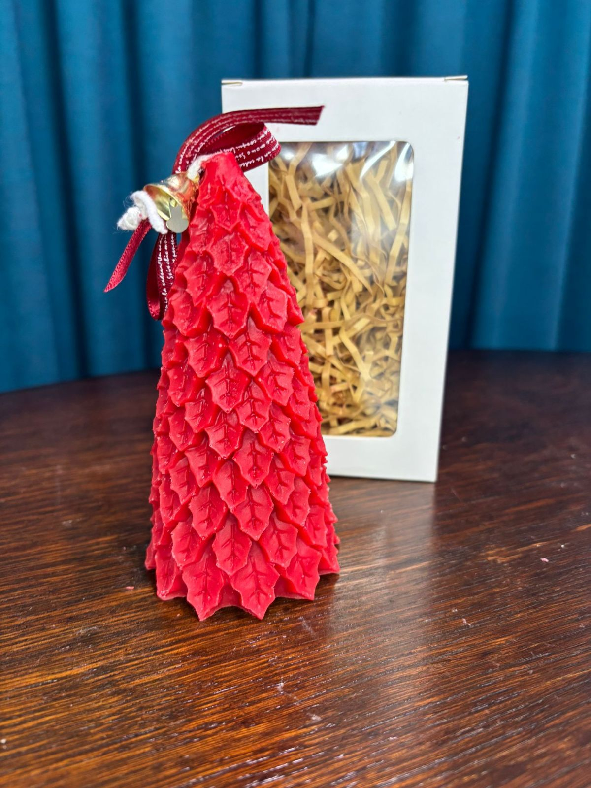 Lumanare decorativa in forma de brad, culoare rosie, 15 cm.